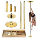ゴールドプロフェッショナルダンスポールは45mm径でポータブル。高さ2.25-2.75m調整可、最大負荷400ポンド。簡単に取り付け、取り外しできるため、エクササイズにも最適。