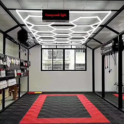 WJWガレージ照明は、LEDプロの自動車美容用ハニカムライトで、ガレージや車のショールームに最適。六角形デザインで、2.4×4.8mのエリアを明るく照らします。