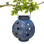 防水のハンドル付きソーラーライト。パティオや庭、玄関、通路の装飾に最適。美しいダークブルーのテクスチャが魅力的。