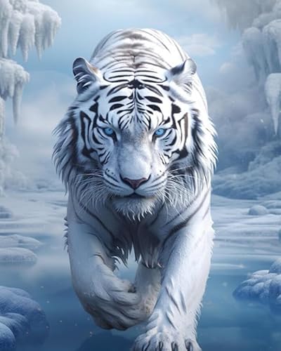 数字による新しいペイントセット。大人も子供も楽しめる、ホワイトタイガーの絵をキャンバスに描くフィギュア。サイズは40x50cm、無框デザインでホームデコレーションに最適。
