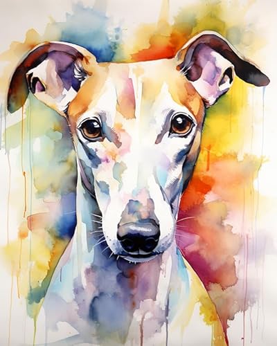 数字に沿って絵を描く新しいペイントキット。ウィペット犬のデザイン、キャンバスサイズ40x50cm。大人と子供向けで、家庭の装飾にも最適。無框で、手軽に楽しめます。