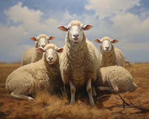 大人向けの数字によるペイントキット。農場の羊の群れを描く楽しさを提供。キャンバスサイズ40x50cm、無框でホームデコレーションに最適。