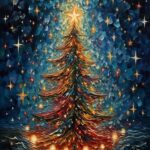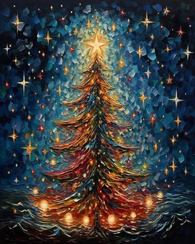 カラフルなクリスマスツリーの数字による新しいペイント。大人や子供向けに楽しめるフィギュアナンバーペインティング。サイズ40x50cm、無框でホームデコレーションに最適。