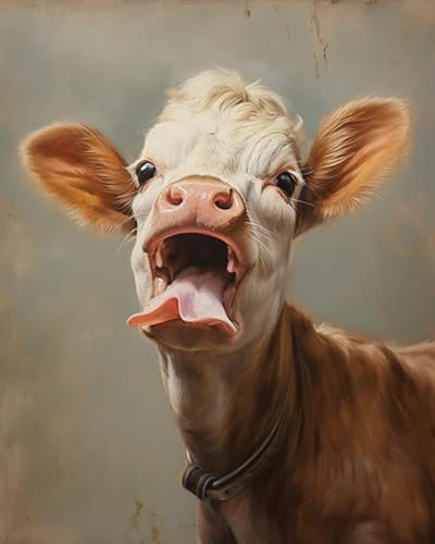 手塗りマグノリアのデジタル油絵。牛のデザインで、初めての方にも適した数字油絵キットです。大人や子供向け、サイズは40x50cmでフレーム付き。