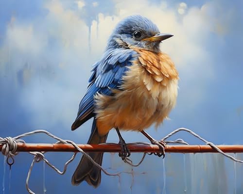 大人も子供も楽しめる数字によるペイントキット。青い動物の鳥を40x50cmのキャンバスに描きます。フィギュアとナンバーペインティングで、おしゃれなホームデコレーションに最適!