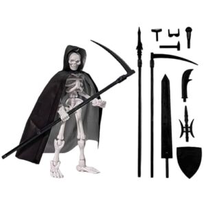 スケルトンアクションフィギュアトイ、小さなおもちゃのスケルトンフィギュア | マルチジョイントスカルアクション彫刻 | 帽子、マント、子供向けのバトルツールアセンブリゲーム付きのポーズ可能な彫刻
