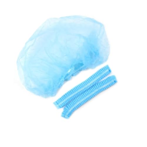 100枚入りの不織布キャップは、使い捨てで通気性があり、工場や病院、美容現場での脱毛対策に最適です。フリーサイズで男女兼用のブルーのキャップです。