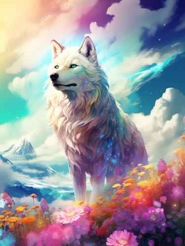 クロスステッチ刺繍キット、動物のオオカミデザイン。初心者向けのDIY刺繍セット。サイズ40x50cm、アートコレクションやホームデコレーションに最適。手芸やハンドクラフトにぴったり!