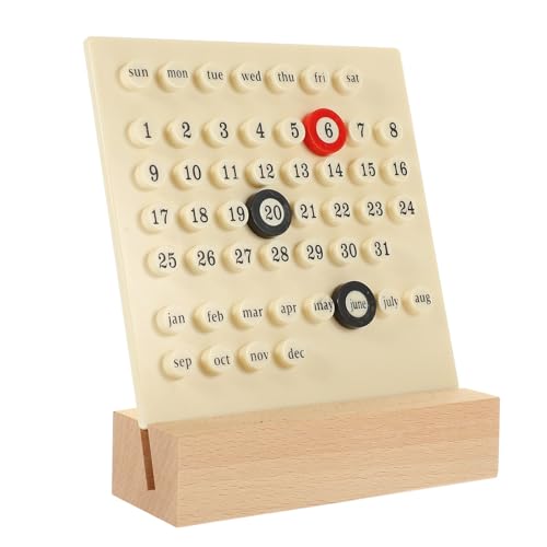 SUPVOXの円形永久卓上カレンダーは、プラスチック製で月日を表示。ABS木材を使用し、オフィスや書斎のデスク装飾に最適。贈答用にも適したデザインです。