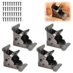 LEONTOOLの折りたたみ金具4個セットです。90度の折れ脚金具で、ブラケットやヒンジとして使用可能。ねじ40枚付きで、DIYや手作りの椅子・テーブル・棚受けに最適です。