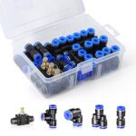 TAILONZ PNEUMATICの空力アクセサリーセット。8mm外径のプッシュ接続パーツが27個含まれ、6箇のコーナー、3通、6直、3気流制御弁が組み合わされています。