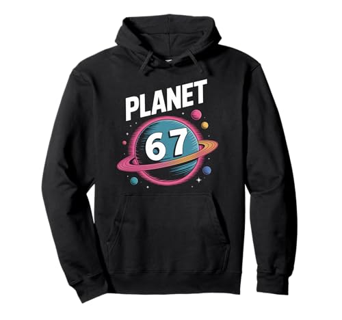 PLANET 67のパーカーは、宇宙と天文をテーマにしたデザインで、土星のリングや星雲が描かれています。67歳の誕生日を記念した特別なアイテムで、SFファン必見です。