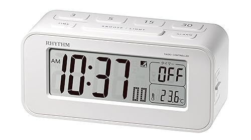 リズム(RHYTHM) 目覚まし時計 電波時計 温度計 3・5・15・30分のワンプッシュタイマー機能付き フィットウェーブタイマーD231 白 6.4×13.6×5.7cm 8RZ231SR03