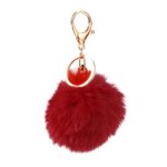 シー赤いファー玉キーチェーンペンダントは、ふわふわソフトファー付きで、バッグや車キーの飾りとして可愛いデコレーション用アクセサリーです。
