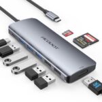 Acodot USB Cハブは9-IN-1で、100Wの急速充電、4K@60HZ HDMI出力、USB 3.0ポート3つ、SD/Micro SDリーダーを搭載。様々なUSB Cデバイスに対応。