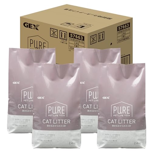 ジェックス GEX 【 PURE 】は、すばやく固まるおからのネコ砂で、2.4kg×4個のケース販売です。ベントナイトを使用し、優れた消臭効果を持つため、PURE CAT AUTO TOILETと相性が抜群です。
