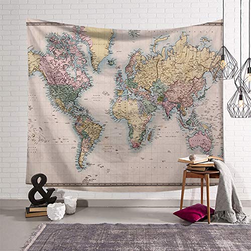 Dekoriのヴィンテージ風ワールドマップタペストリーは、150x130cmの大判サイズで、おしゃれな壁掛けとして部屋やパーティーの装飾に最適です。個性あふれる家庭飾りや新居祝いの贈り物にもおすすめです。
