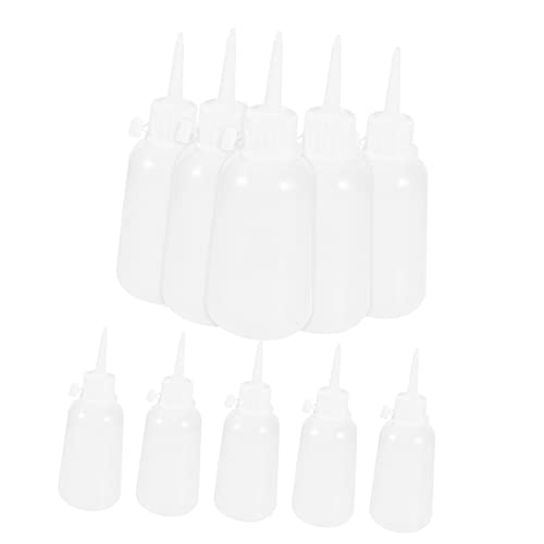 Angoily 100ml先端針ボトル10個入り、白キャップ付き。再利用可能なプラスチック製で、画材作業やクラフト修理、手芸に最適。使いやすいデザインで、精密な接着が可能です。