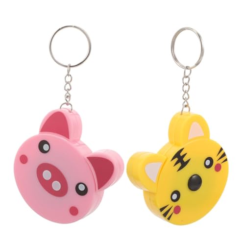 可愛い動物デザインの小型格納式巻尺キーホルダー2個セット。トラとブタのデザインで、伸縮式で使いやすく、携帯に便利なミニポケットメジャーです。