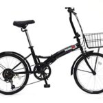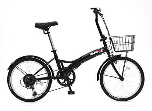 PANGAEAの折りたたみ自転車は、ノーパンクタイヤを採用し、20インチのサイズで6段変速が可能。バスケットと泥除けも装備されており、利便性が高い。カラーはブラックです。