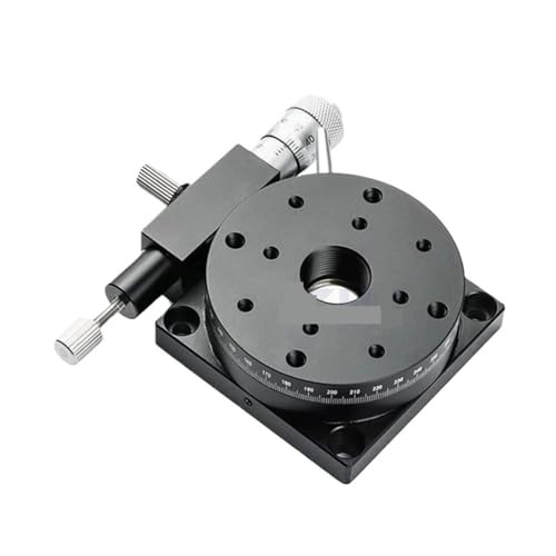 RSP90-LとRSP90-Rは、90mmのR軸を持つ360度高精度回転スライドテーブルです。手動で角度調整可能で、光学マイクロメーターに適しています。