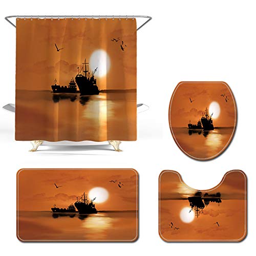 ZHOUSS 3D 海上船舶デザインの防水シャワーカーテンと4ピーストイレクッションカバー(YL417 + SY417)は、インテリアを華やかに演出。耐水性でお手入れも簡単、シックな海の雰囲気を楽しめます。
