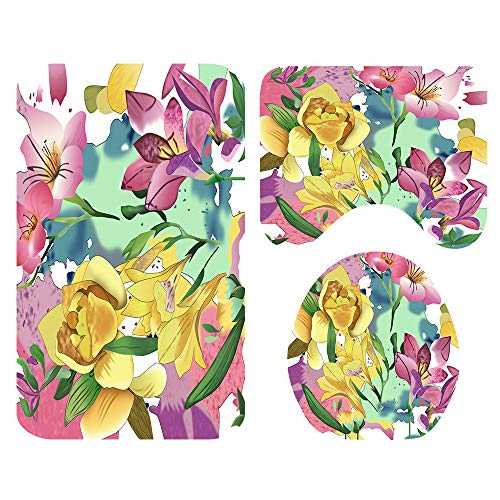ZHOUSS 1セットカラーロータス防水シャワーカーテンとカーペット4ピーストイレクッションセットSY303。おしゃれで機能的なデザイン、浴室やトイレに最適。
