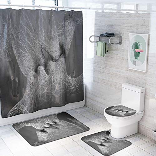 ZHOUSSの防水シャワーカーテンカーペット4ピーストイレクッションセットは、優れた撥水性と耐久性を備え、バスルームをスタイリッシュに演出します。お手入れも簡単で、滑り止め機能付きです。