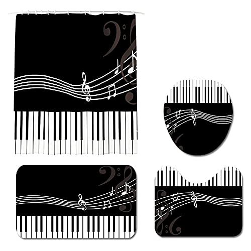 ZHOUSSのフォーピーススーツは、ピアノキーデザインの防水シャワーカーテンとカーペット、トイレクッションの4点セットです。おしゃれで機能的なバスルームを演出します。