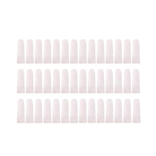 100枚入りの白布製指サック。綿製で手湿疹や指先保護に最適。耐久性あり、汗止めや通気性も良好。滑り止め機能付きで実験や水仕事に便利。使い捨てで清潔、静電防止効果あり。