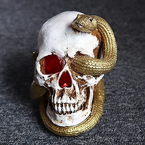 白色の仿真骷髅头万圣节装饰で、高さ20cm、幅17cm、奥行20cmのサイズです。恐怖感あふれるデザインで、蛇が絡む鬼頭の造形が特徴。ハロウィンのインテリアや演出に最適なアイテムです。