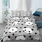 灰色のパンダ柄のシングル寝具カバー3点セット。掛け布団カバーと枕カバー付きで、洋式・和式兼用。肌触り良く、静電気防止機能あり。四季を通して使え、洗える仕様。