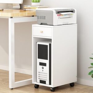 パソコンラック 耐荷重30kg 木材 引き出し付き サイドワゴン PCラック 配線収納 高さ65cm 狭小空間対応 サイドテーブル キャスター付き プリンター台 多用途収納棚 省スペースPC置き台 CPUワゴン 事務用品 機置き スク下収納 ベッドサイドテーブル 組立簡単 キッチンラック ソファー/サイド/オフィス/ベッドルーム/ゲーム用(ホワイト)