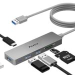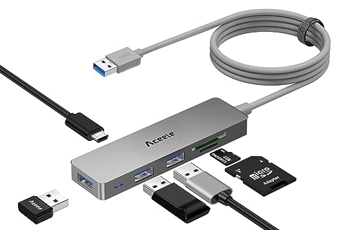 Aceele USBハブは、超薄型設計で6-in-1機能を持ち、SD/TFスロット、3USB 3.0ポート、Micro USB電源ポートを備えています。最大5Gbpsの高速データ転送が可能で、MacやWindowsデバイスに対応しています。