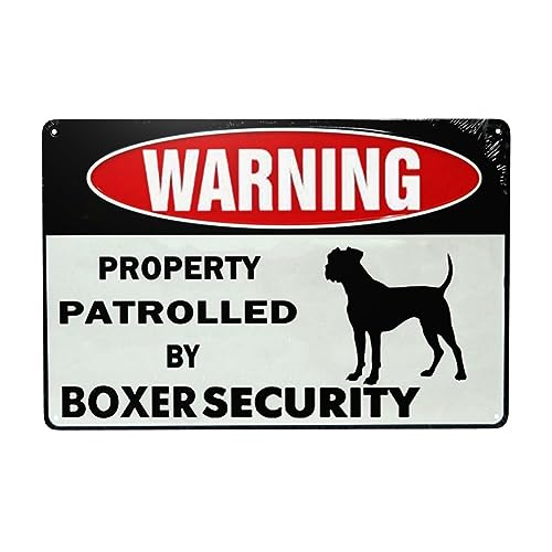 ボクサー犬のブリキ製飾り板(8X12インチ)は、ユニークな警告サインで庭のデコレーションに最適。犬好きへのギフトや素朴な農家スタイルにピッタリ!