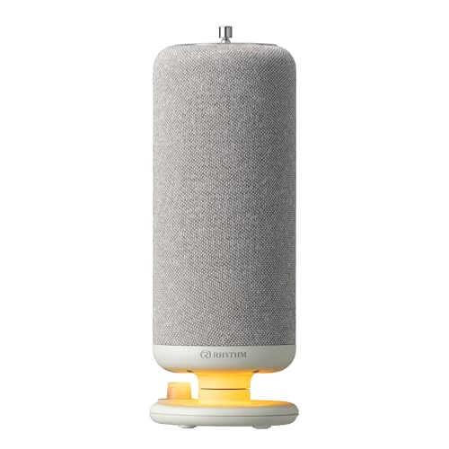 リズム Bluetoothスピーカーはポータブルラジオ機能搭載。手回し充電やスマホ充電が可能で、IP44防塵防水設計。防災グッズとしても優れ、小型で持ち運び簡単です。ライトグレーのデザイン。