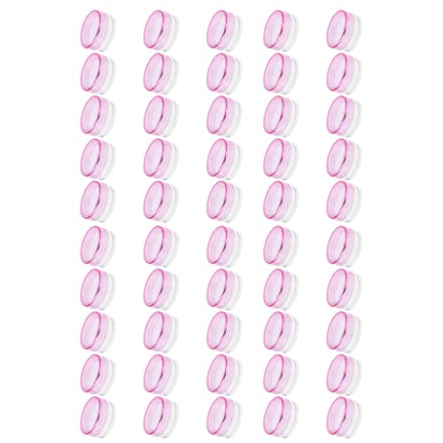 50個入りの蓋付き透明プラスチック化粧品ジャー。旅行用に最適なストレージオーガナイザー。メイクアップローションやクリーム、ネイルアクセサリー、ジュエリー収納に便利です。ピンクのデザインです。