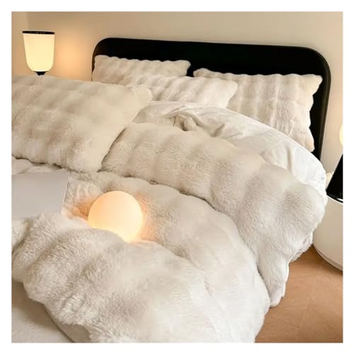 冬用ソフトぬいぐるみ寝具セット、クイーンサイズ(200x230cm)、ダブル布団カバー、シーツ、枕カバー付き。柔らかく快適な素材で、寒い季節にぴったりの暖かさを提供します。4点セット。