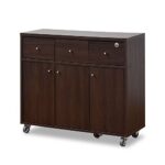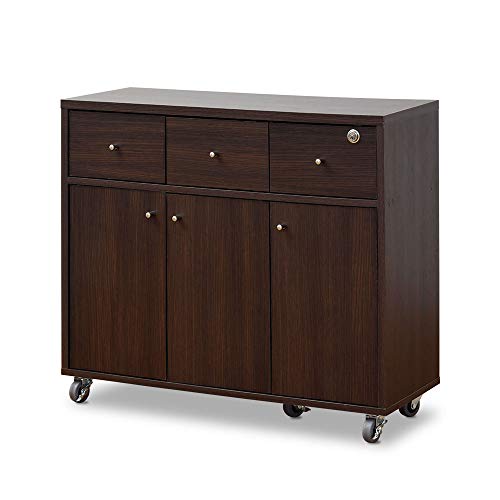moca会社のSIMPLEキッチンカウンターは、完成品で間仕切りとしても使えるキャビネットです。キャスター付きで移動が簡単、鍵が付いているので安全に収納できます。幅80cm、色はブラウンです。