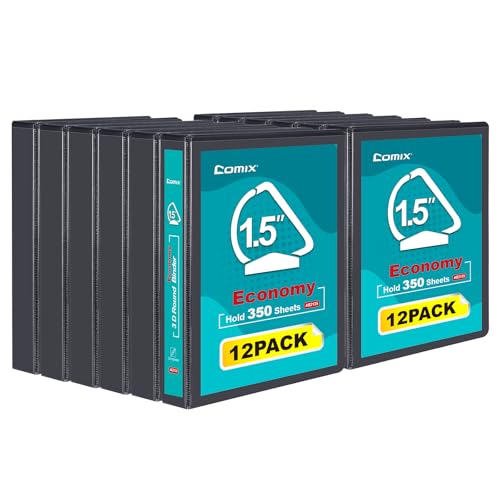COMIX エコノミー 1.5インチ バインダーは、スラントD型の3リングデザインで、USレターサイズ用紙350枚を収納可能。内ポケット付きで便利な12パック。学校やオフィス、自宅での使用に最適。