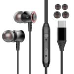 USB Type-Cイヤホン、有線タイプでマイク付き。HIFI音質、音量調節、騒音低減機能あり。iPhone 16やiPad、各種スマホにも対応(レッド)。
