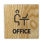 サインプレートウッドサインは、オフィスや事務室向けのドアプレートです。90×90cmの大きさで、メイプルまたはウォールナットの素材を使用。洗練されたデザインで、表札や室札としても適しています。