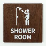 Signjapan ウッドサイン SHOWER ROOMは、メイプルとウォールナットの素材を使用した木製ドアサインです。サイズは120×120mm。おしゃれなデザインで、室内の表札や室札に最適です。Type1-2のウォールナット仕様。
