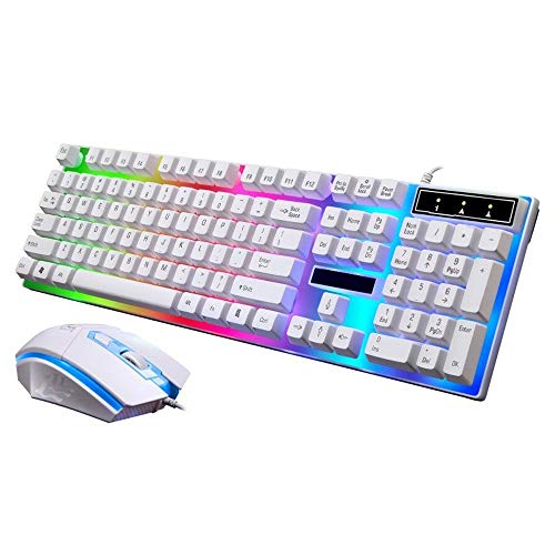 mini2x 最新型モデルのゲーミングキーボードとマウスのセット。白のUSB有線、レインボーLED搭載。耐用設計で、PS4、PS5、PCに対応。初心者にも使いやすいが、任天堂スイッチには非対応。