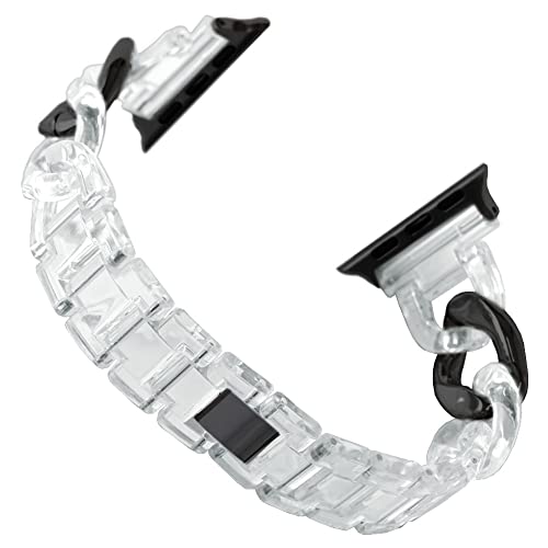 モバイルプラスのアップルウォッチ用クリアブラックバンド。対応モデル多数(1〜11、SEシリーズ、Ultraシリーズ)。可愛いキラキラデザインでプレゼントにも最適。