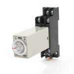uxcellの遅延タイマーリレーソケットは、メタルとプラスチックのグレーブラック仕様で、AC 110V対応。H3Y-2モデルで、遅延時間は0-60秒、DPDTタイプです。
