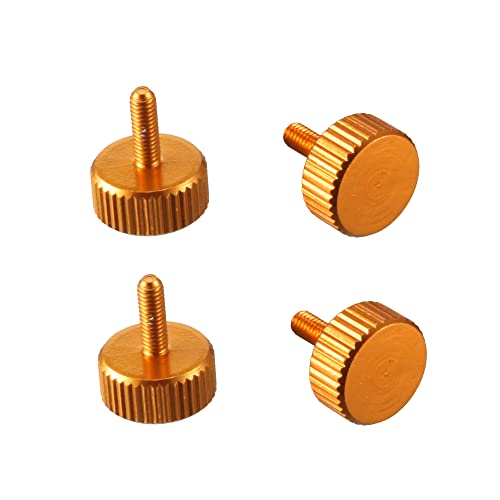 uxcellのローレットつまみネジはM2.5x8mmサイズで、アルミニウム合金製です。4本セットで、コンピュータやPCケース、ハードドライブ、ノギスなどの測定機器に適しています。カラーは金色です。