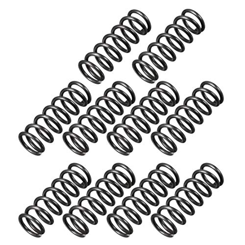 uxcellの圧縮バネは、線径1.2 mm、外径9 mm、自由長25 mmのエクステンションスプリングです。ばね鋼製で、耐久性に優れ、ブラック仕上げで10個セットで提供されています。
