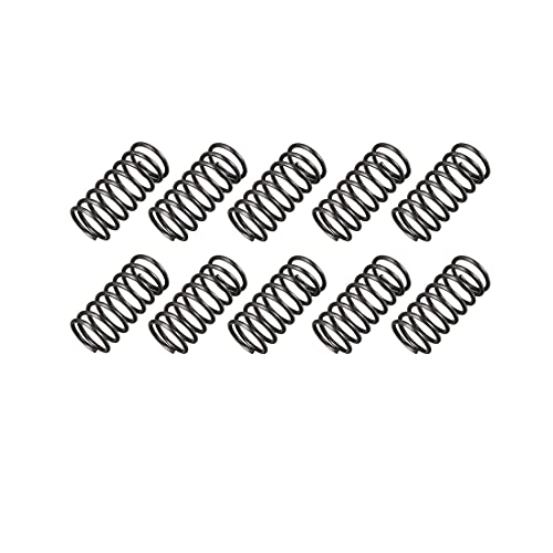 uxcellの圧縮バネは、線径1.2mm、外径12mm、自由長さ25mmのばね鋼製です。ブラックカラーで、10個セットで提供され、優れた耐久性と性能を持っています。
