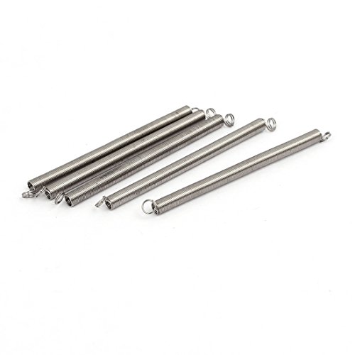 uxcellの引きバネは、5個セットで長さ5cm、線径0.3mm、外径3mmの304ステンレス製です。おもちゃやプラモデル、DIYに最適なテンションスプリングです。